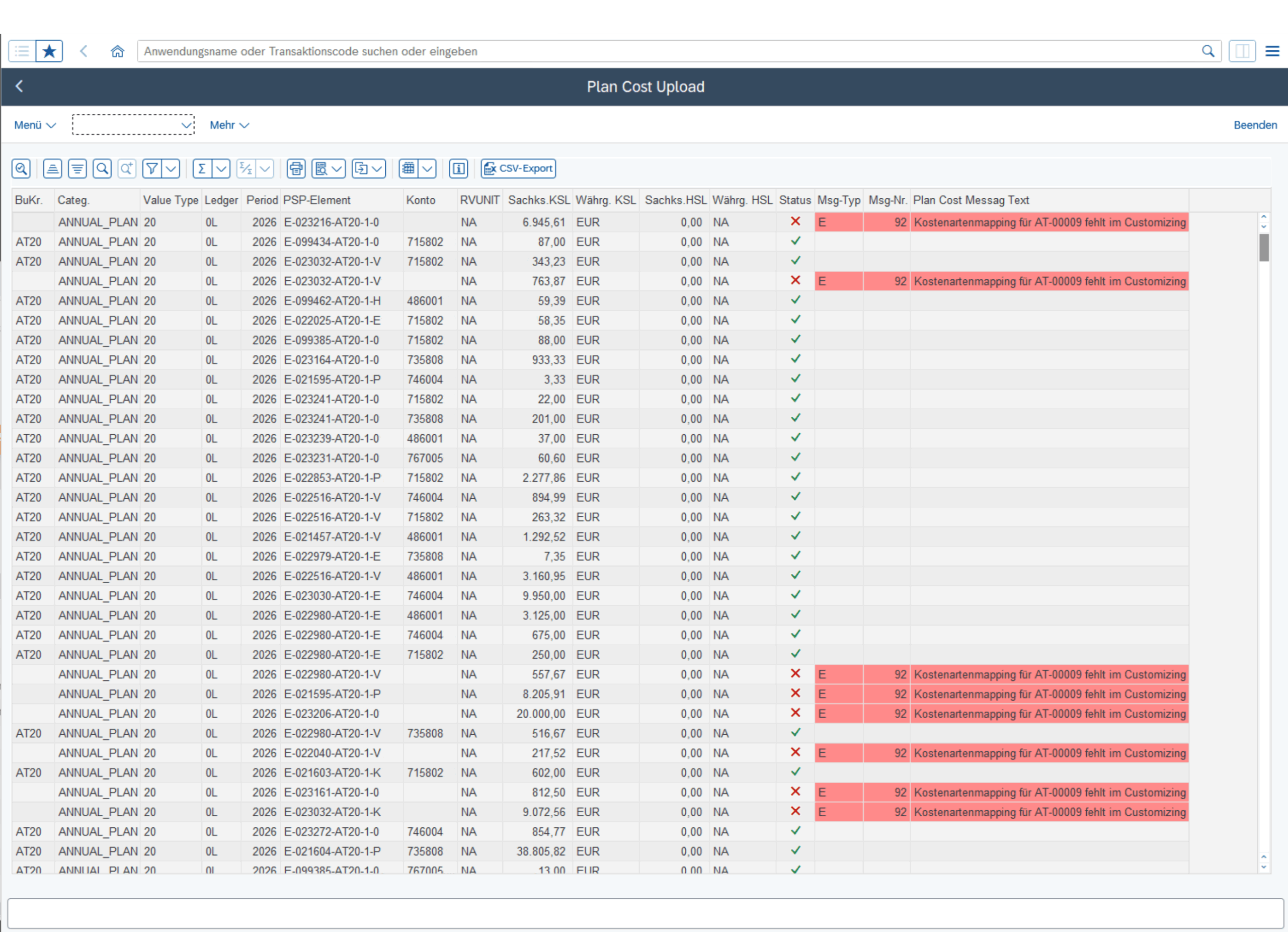 Plankosten und/oder Plankapazitäten werden in einer Fremdsoftware (bspw. PLANTA) erstellt, sind aufzubereiten und in SAP zu importieren. Bereitgestellte Schnittstellen (CSV, Excel, udgl.) stellen Systembrüche dar und verursachen oft durch ungewollte Konvertierungen (IDs oder Trennzeichen) Fehler.